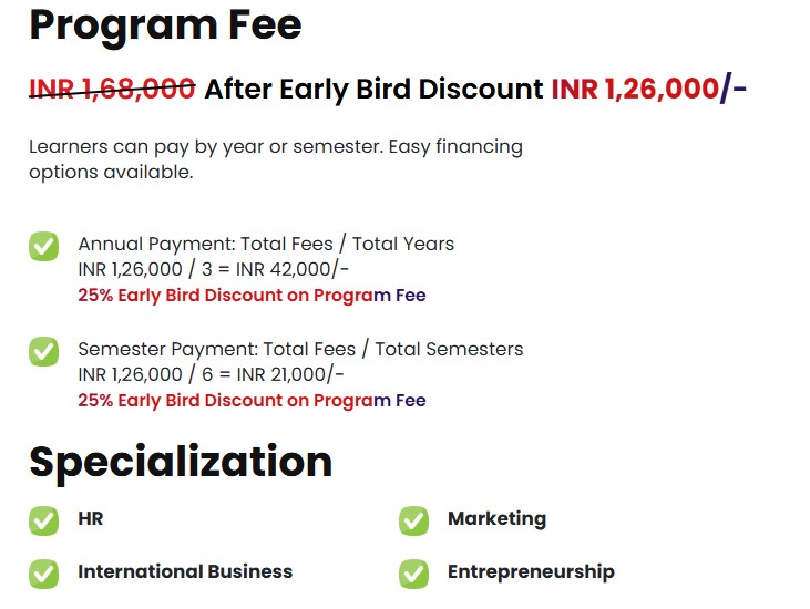 07 Nov, 2025 Chandigarh University Online Mohali BBA Fee structure 2026-27 has been released. The total academic fee is ₹ 1.26 Lakhs.