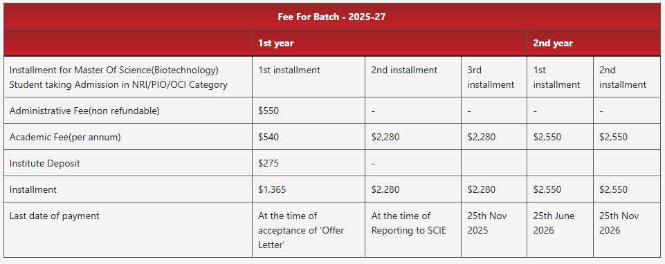 Earlier, M.Sc Biotechnology fees at Symbiosis School of Biological Sciences Pune was ₹ 5.2 Lakhs (in 2024) for the entire course duration. This shows a fee increase of ₹ 50,000 over the year.