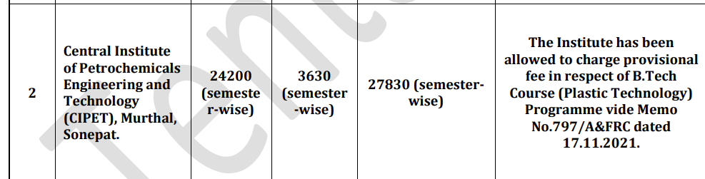 | CIPET: Institute Of Petrochemicals Technology Sonepat | ₹ 2.23 Lakhs |