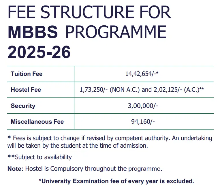 NOTE:- Caution money- Rs.3,00,000 includes Hospital, library, lab and other security deposits.