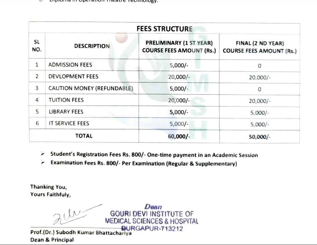 Gouri Devi Institute of Medical Science and Hospital Durgapur Hostel Fee is ₹ 12.8 Lakhs.
