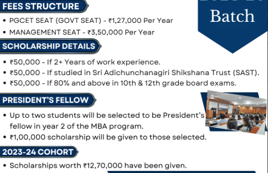 The minimum eligibility for admission to MBA at BGS College of Engineering and Technology Bangalore is Graduation with KMAT/PGCET. Candidates are allotted seats based on Karnataka-PGCET.