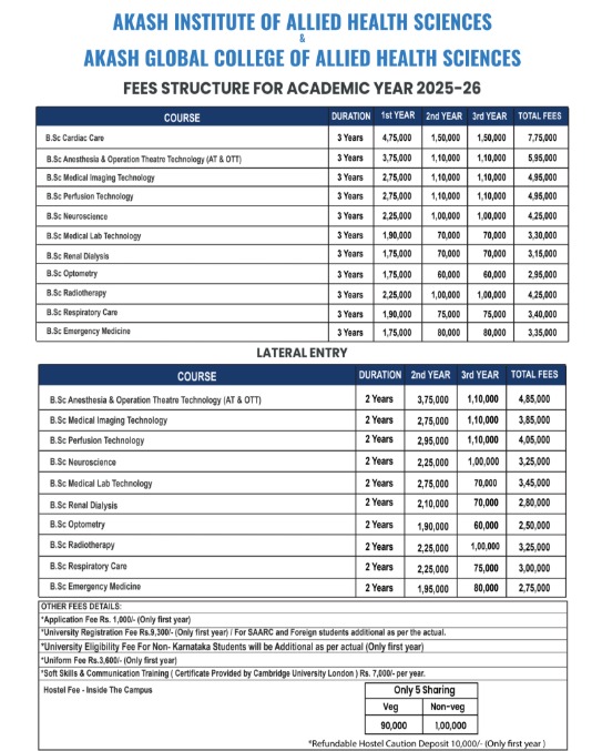 B.Sc Renal Dialysis Technology at Akash Institute Of Engineering & Technology Bangalore is a 3 Years Degree. The course is offered On Campus as a Full Time program. Akash Institute Of Engineering & Technology Bangalore B.Sc Renal Dialysis Technology First Year Fees is INR 1,62,200 for 2025.