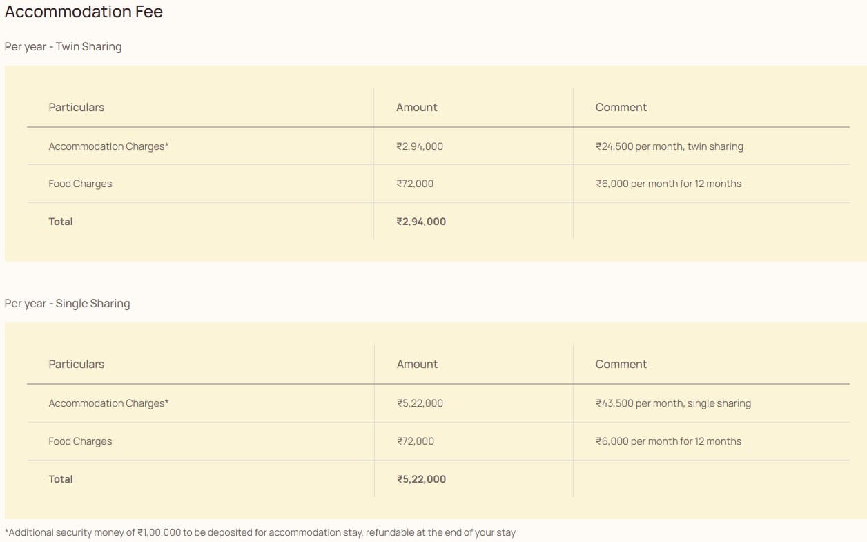 - Candidates need to pay ₹ 26.5 Lakhs in the first year.