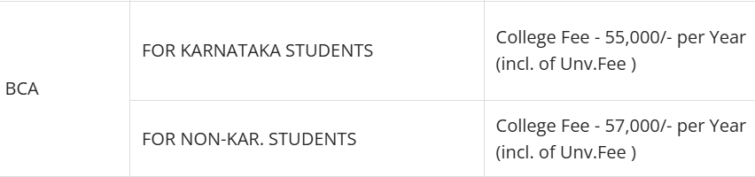 Ballari Business College Bellary BCA is offered as 3 Years Full Time program. The minimum eligibility criteria for BCA is 10+2. The total fees for Ballari Business College Bellary BCA in 2025 is ₹ 1.65 Lakhs for the complete course duration, which includes total tuition fees of ₹ 1.65 Lakhs. Earlier, the fees in 2024 - 2025 for BCA was ₹ 1.35 Lakhs.