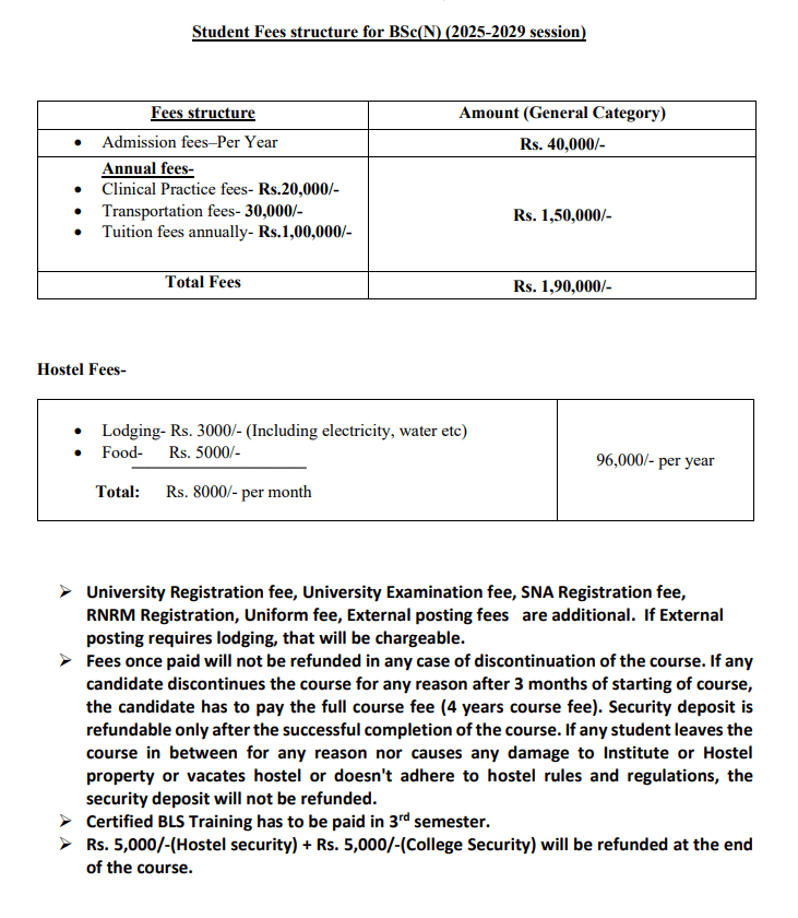 | Fees (2025 - 2026) | Year 1 (in INR) | Year 2 (in INR) | Year 3 (in INR) | Year 4 (in INR) |