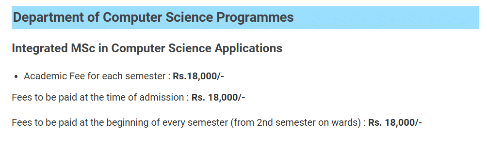 Fee Structure as per official website: