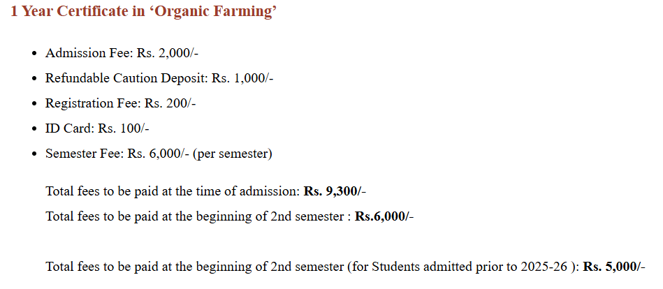 RKMVERI Ranchi Campus Certification Organic Farming Fees