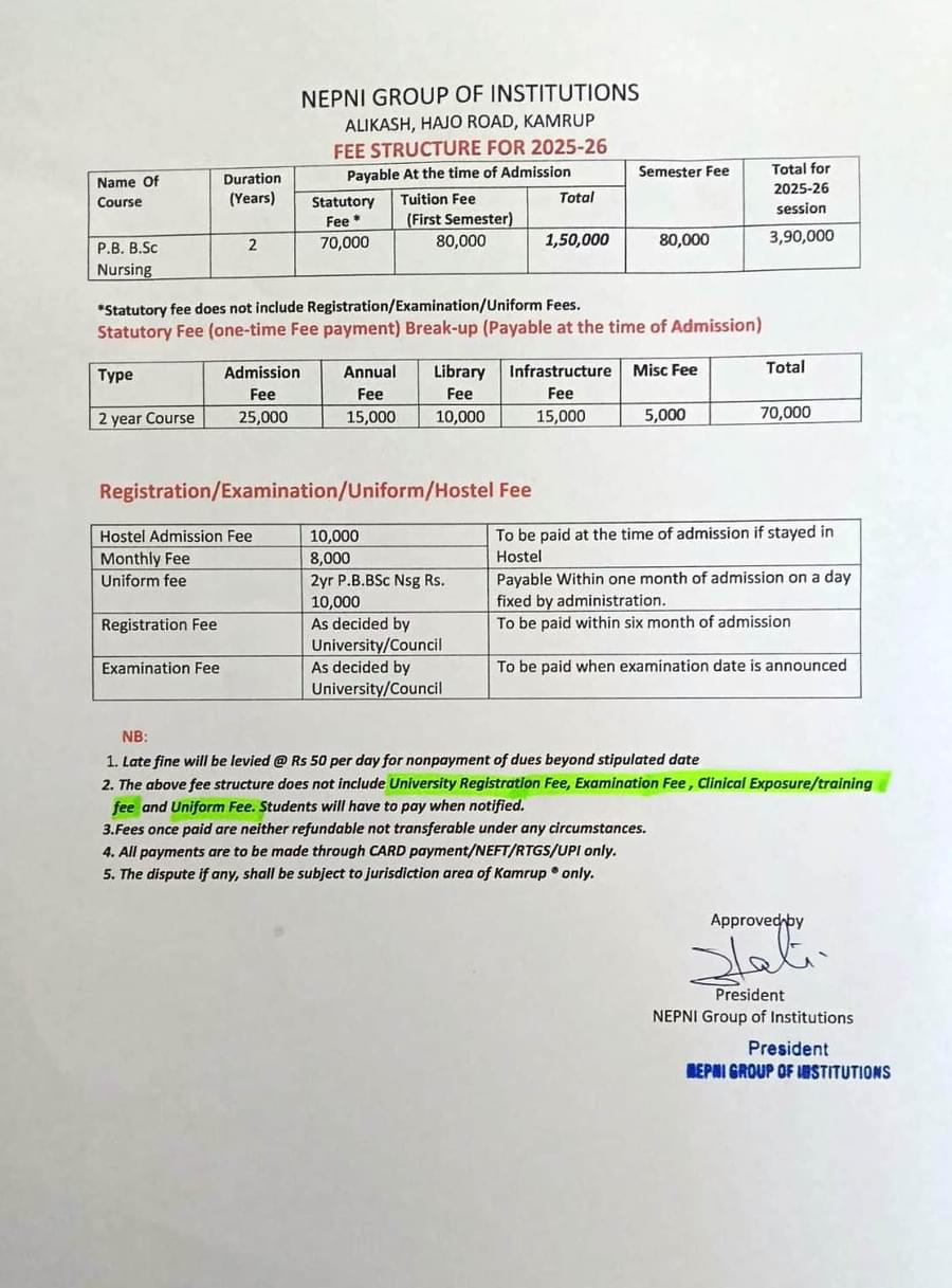 Nepni Group of Institutions P.B.B.Sc Nursing fees 2025 is ₹ 4 Lakhs for the entire course duration.