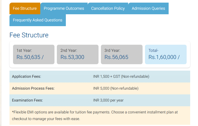 - This includes a total tuition fee of ₹ 1.6 Lakhs, Other Fees of ₹ 5,000.