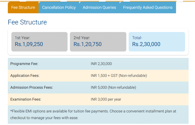 - This includes a total tuition fee of ₹ 2.3 Lakhs, Other Fees of ₹ 5,000.