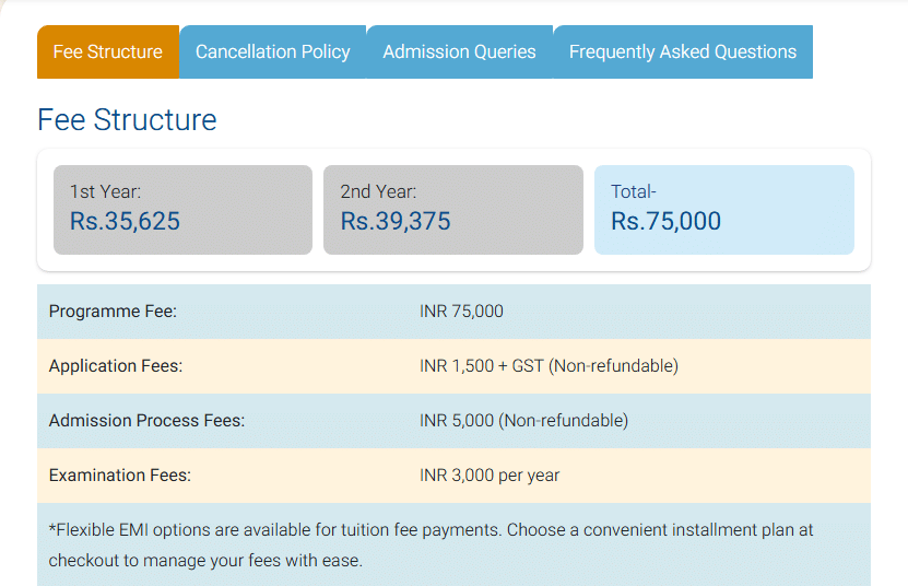 - This includes a total tuition fee of ₹ 75,000, Other Fees of ₹ 5,000.