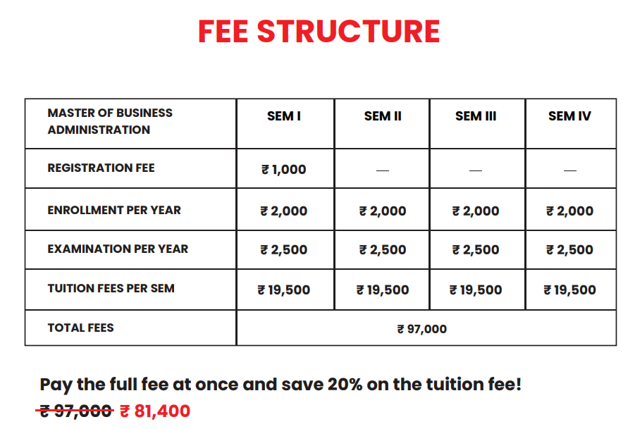 Ganpat University Online MBA fees 2025 is ₹ 97,000 for the entire course duration.