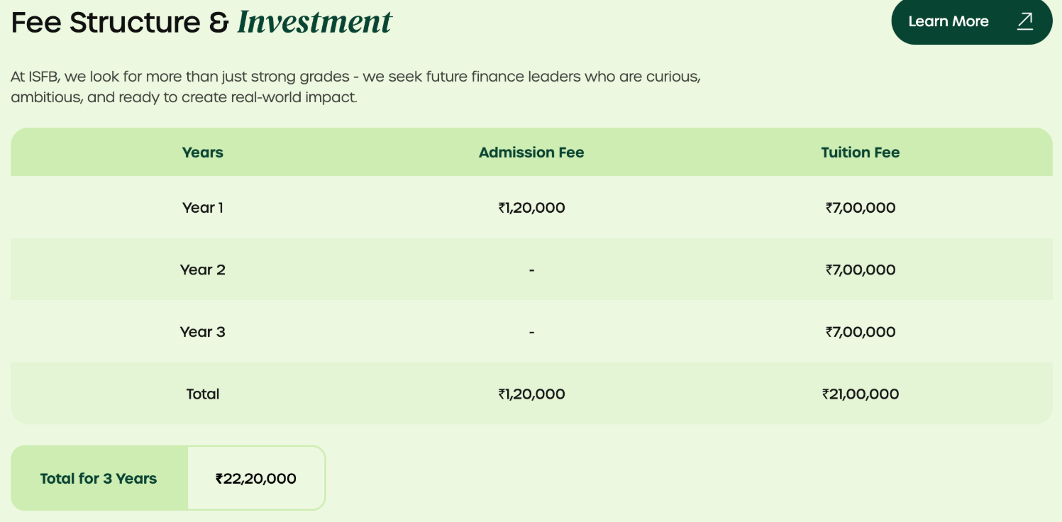 BBA Finance Fees at Imarticus School of Finance & Business (ISFB) covers a range of expenses, including tuition fee, course materials, and access to campus facilities.