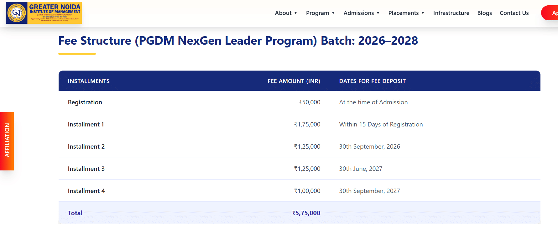 | total fee | ₹5.75 Lakhs |