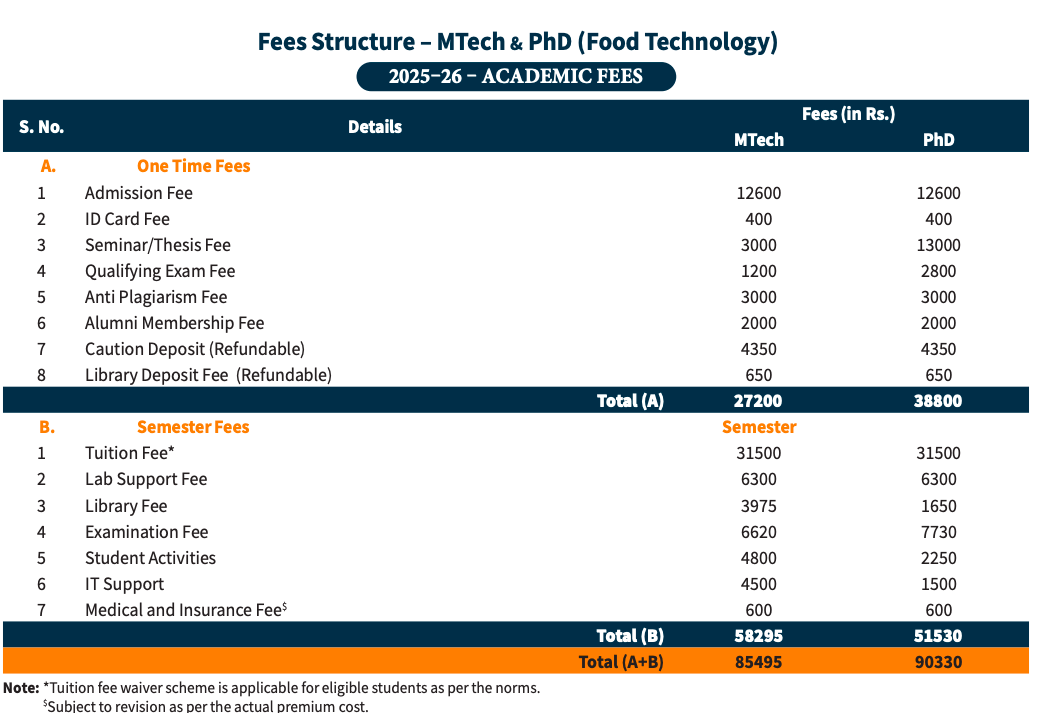Earlier, Ph.D Food Science And Technology fees at NIFTEM Thanjavur was ₹ 3.46 Lakhs (in 2023) for the entire course duration. This shows a fee decrease of ₹ 2.26 Lakhs over the year.