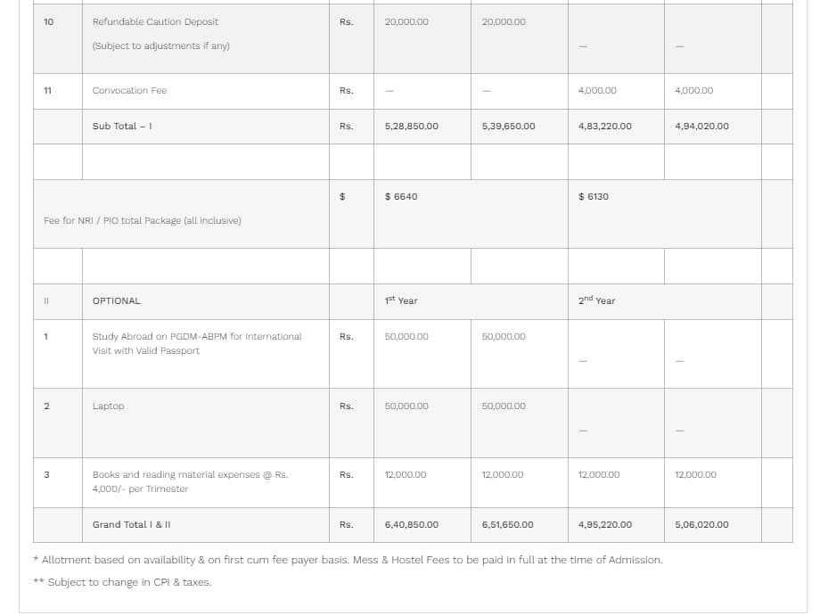 - Candidates need to pay ₹ 7.86 Lakhs in the first year.