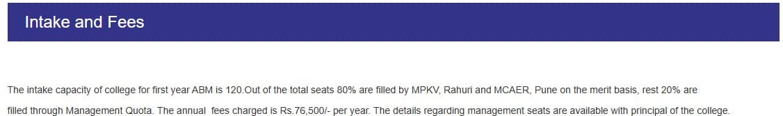Earlier, B.Sc {Hons.} Agribusiness Management fees at K. K. Wagh Agriculture and Agriculture Allied Colleges Nashik was ₹ 7.84 Lakhs (in 2024) for the entire course duration. This shows a fee decrease of ₹ 4.78 Lakhs over the year.