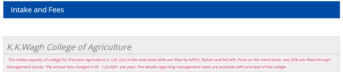 Find detailed K. K. Wagh Agriculture and Agriculture Allied Colleges Nashik B.Sc {Hons.} Agriculture fees, eligibility, admission dates, cutoff and ranking below.