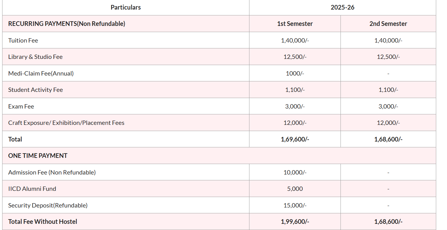 | Fee Type | Total Amount (INR) |