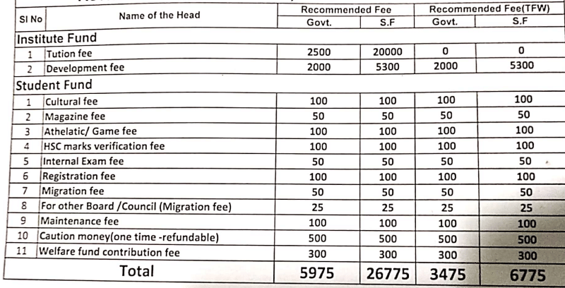 Fee structure as per official website: