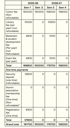 - This includes a total tuition fee of ₹ 6.16 Lakhs, Caution Fees of ₹ 12,600, Other Fees of ₹ 46,000.