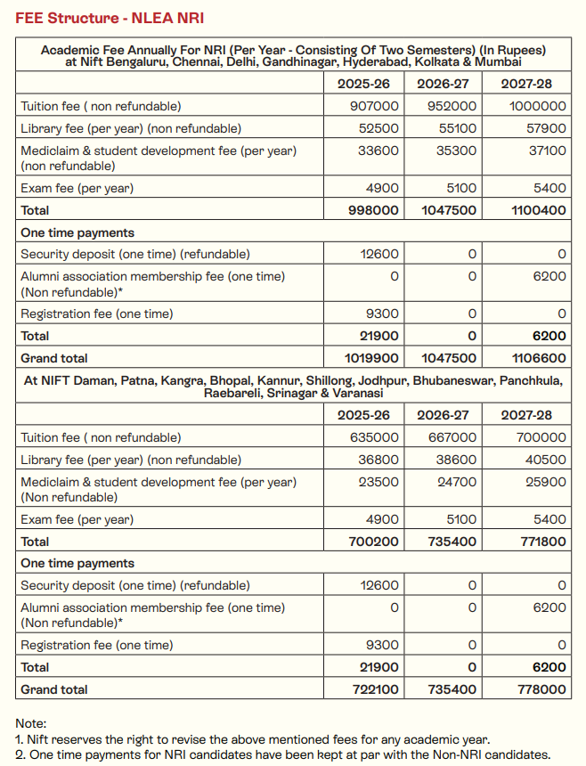 | NIFT Hyderabad | ₹ 10.38 Lakhs |