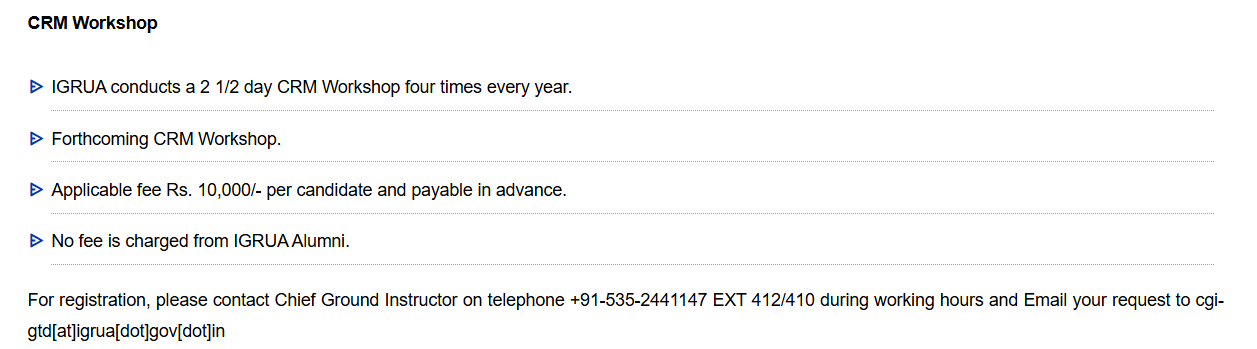 IGRUA Certification Crew Resource Management fees 2025 is ₹ 10,000 for the entire course duration.