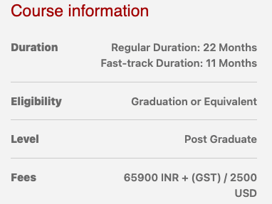 | Indian School of Business Management and Administration Chennai | ₹ 65,900 |