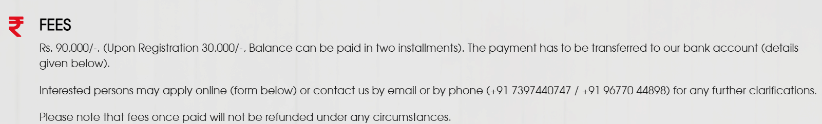 - The total fees for Certification Cinematography is ₹ 90,000.