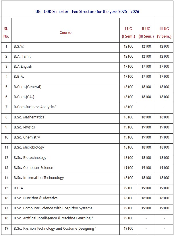 | Fees (2025 - 2026) | Year 1 (in INR) | Year 2 (in INR) | Year 3 (in INR) |