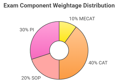 Candidates seeking admission to UG courses must have 10+2 in any relevant stream. Selection of the candidates will be based on MECAT and CAT, followed by SOP and PI. The weightage criteria are given below: