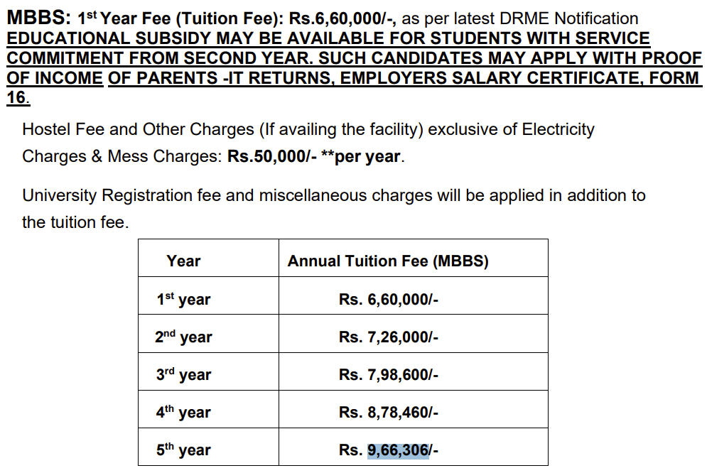 - Candidates need to pay ₹ 7.1 Lakhs in the first year.