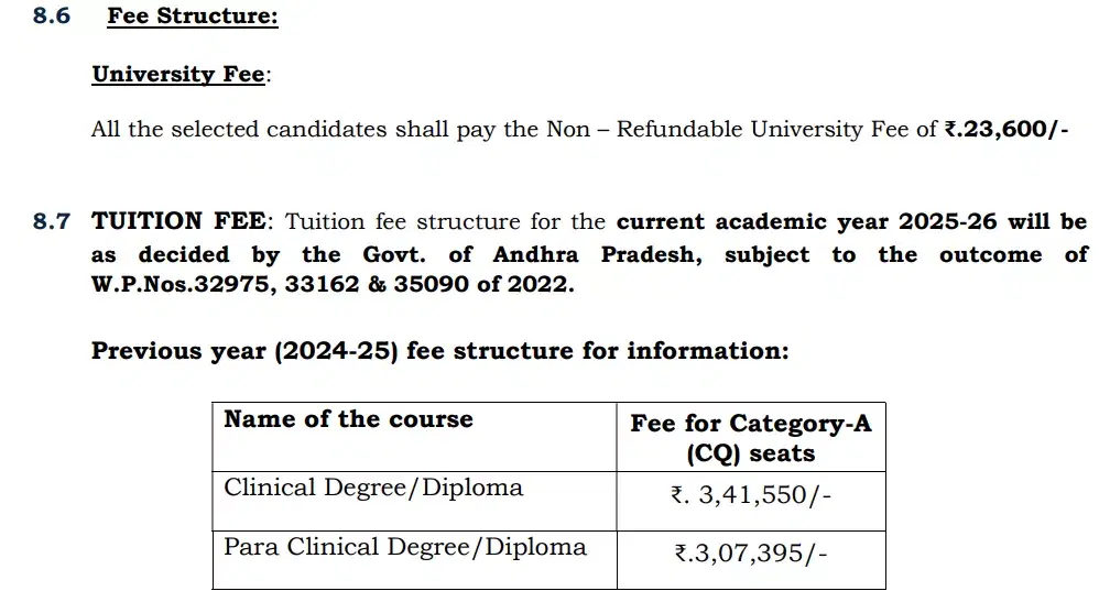 - Candidates need to pay ₹ 3.65 Lakhs in the first year.