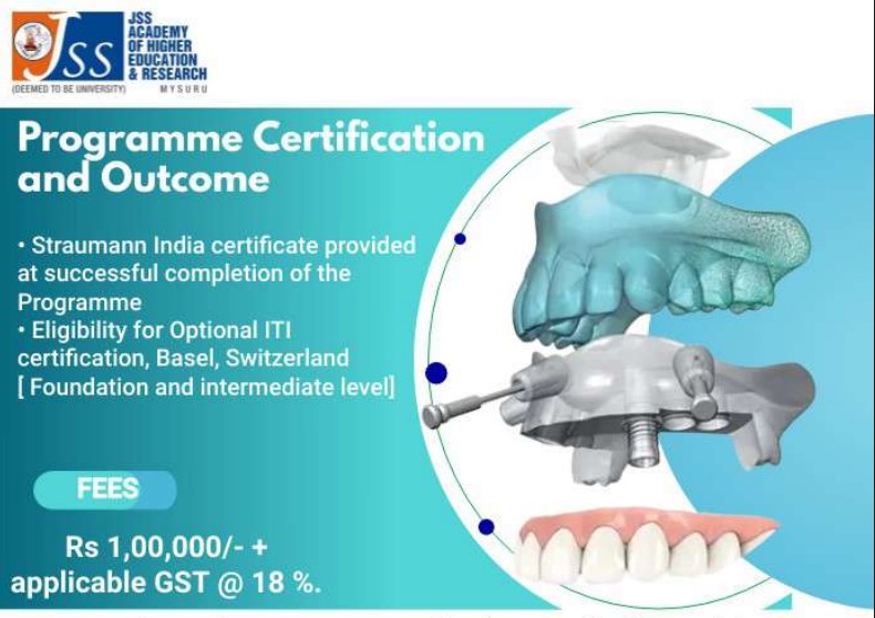 The minimum eligibility for admission to Certification Dental Implantology at JSS Dental College and Hospital Mysore is Graduation.