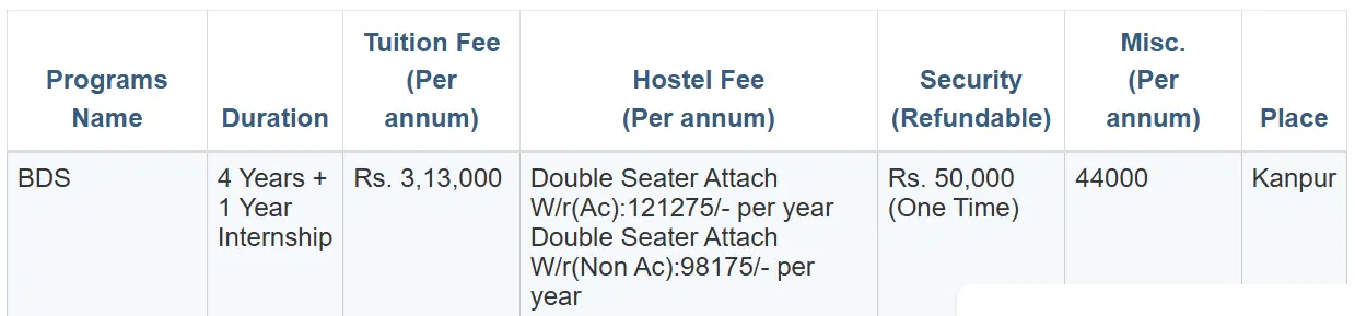 Rama Dental College Hospital and Research Centre Kanpur BDS fees in first year is ₹ 4.07 Lakhs. The detailed fees is mentioned below.Rama Dental College Hospital and Research Centre Kanpur Hostel Fee is ₹ 65,000 to 1.73 Lakhs.