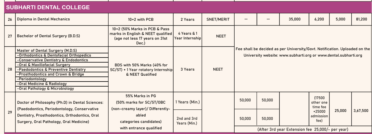 Subharti Dental College Meerut Hostel Fee is ₹ 98,175 to 1.44 Lakhs.