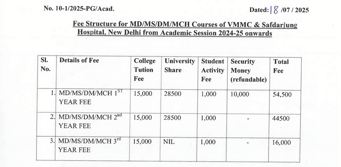 Earlier, M.Ch Urology fees at VMMC was ₹ 93,000 (in 2023) for the entire course duration. This shows a fee increase of ₹ 22,000 over the year.