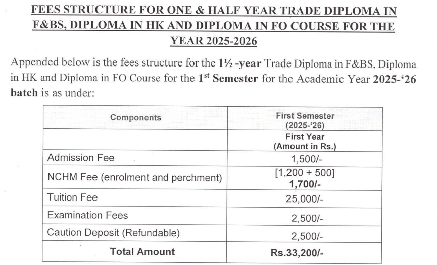 | Submission of Applications Dates for Admission [Diploma in Hotel Management] | Oct 15, 2025 |