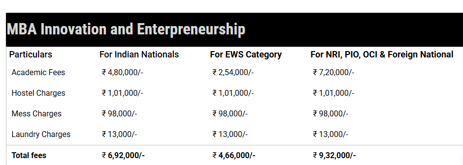 For students applying under the NRI quota for admission, the total course fee for MBA Innovation And Entrepreneurship at MITID is ₹ 14.4 Lakhs.