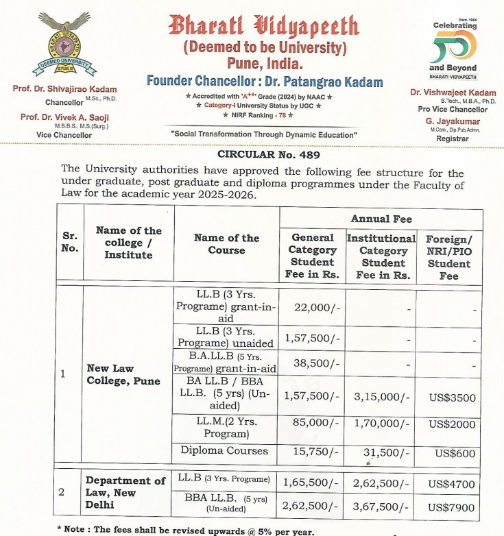 Check Bharati Vidyapeeth New Law College Pune Admission 2025