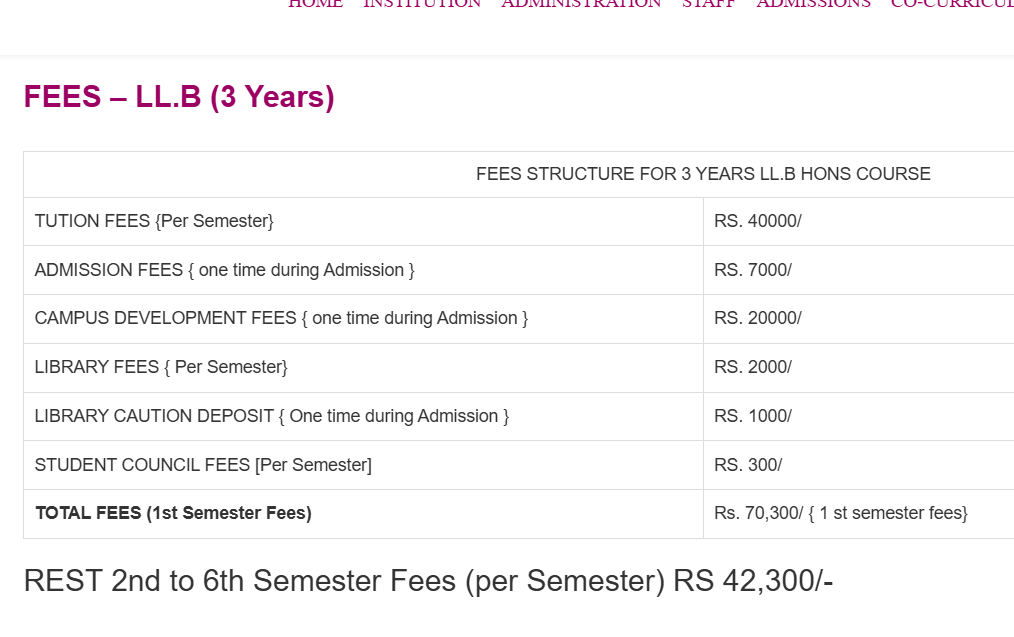 | Semester Wise Fees | 70300 | 42300 | 42300 | 42300 | 42300 | 42300 |