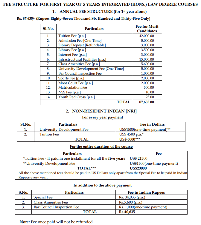 The annual course fee is 69,000, covering library, NSS, cultural activities, and sports, deemed feasible by many students, often financed via loans. Graduates typically recoup their investment within six months due to the program's affordability and excellent job prospects. University-affiliated colleges have placement cells to help with internships and job opportunities. Graduates often work as legal advisors in corporate settings, pursue higher education, or practice in regional courts. It's noted that law colleges traditionally do not directly provide job placements for LLB graduates.