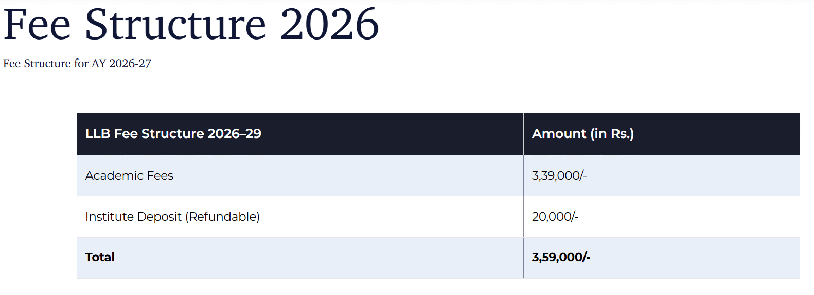 Hostel facilities are not available in the third year. Tuition fees may increase by up to 10% each year. Graduates from the 5-year LLB program often receive job offers with salaries around 200,000 Rs per month. The college also offers special scholarships such as the North-east resident scholarship, which provides a 20% tuition fee concession annually.