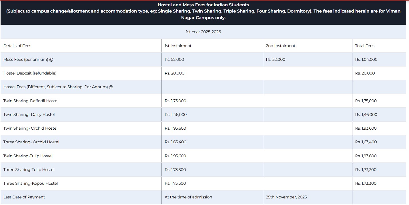 The college hostels have a well-maintained infrastructure with both twin and triple sharing rooms available, costing approximately Rs. 135,500 for twin sharing and Rs. 115,500 for triple sharing, plus a refundable security deposit of Rs. 15,000. Hostel fees do not include accommodation, which is optional for girls and non-existent for boys, who often choose private options or nearby flats costing Rs. 16,000-22,000/month for 2BHK and Rs. 24,000-30,000/month for 3BHK. Food is served four times a day, offering variety and generally good taste, though it can be spicy.