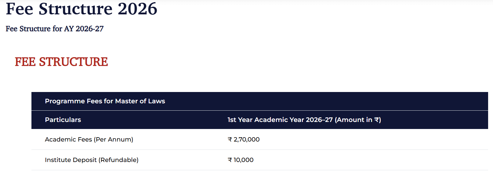 - This includes a total tuition fee of ₹ 2.5 Lakhs, Other Fees of ₹ 10,000.