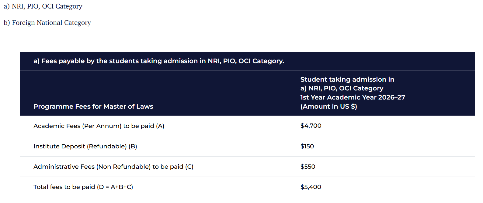 | College | L.L.M Business And Corporate Law Total Fees |