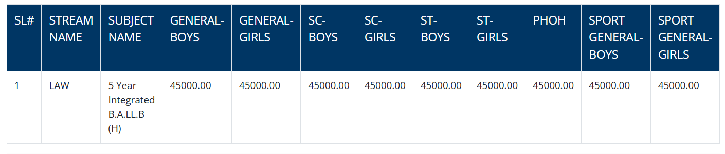 | Tuition Fees | 45000 | 45000 | 45000 | 45000 | 45000 |