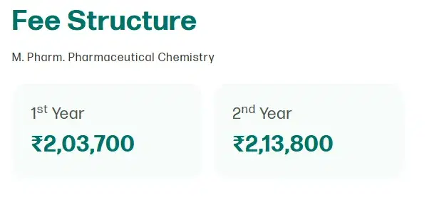 GITAM School of Pharmacy Visakhapatnam M.Pharm Pharmaceutical Chemistry is offered as 2 Years Full Time program. The minimum eligibility criteria for M.Pharm is B.Pharm with 50% + GAT. The total fees for GITAM School of Pharmacy Visakhapatnam M.Pharm Pharmaceutical Chemistry in 2025 is ₹ 4.18 Lakhs for the complete course duration, which includes total tuition fees of ₹ 4.18 Lakhs. Earlier, the fees in 2024 - 2025 for M.Pharm Pharmaceutical Chemistry was ₹ 3.98 Lakhs.