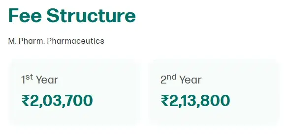 GITAM School of Pharmacy Visakhapatnam M.Pharm Pharmaceutics is offered as 2 Years Full Time program. The minimum eligibility criteria for M.Pharm is B.Pharm with 50% + GAT. The total fees for GITAM School of Pharmacy Visakhapatnam M.Pharm Pharmaceutics in 2025 is ₹ 4.18 Lakhs for the complete course duration, which includes total tuition fees of ₹ 4.18 Lakhs. Earlier, the fees in 2024 - 2025 for M.Pharm Pharmaceutics was ₹ 3.98 Lakhs.